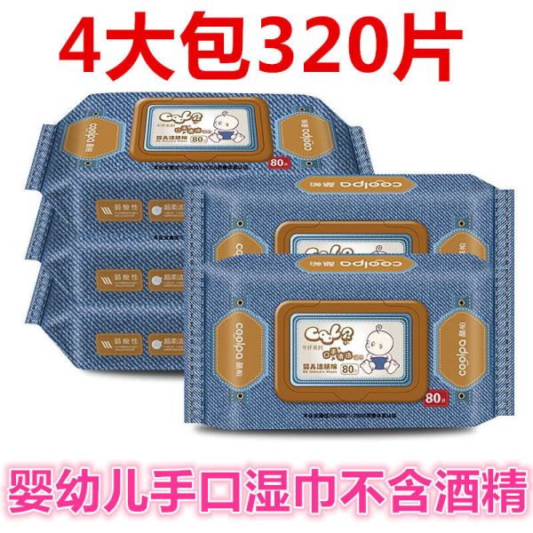 酷帕 婴儿手口柔湿巾纸大包80抽特价装宝宝专用加大加厚湿纸巾成箱