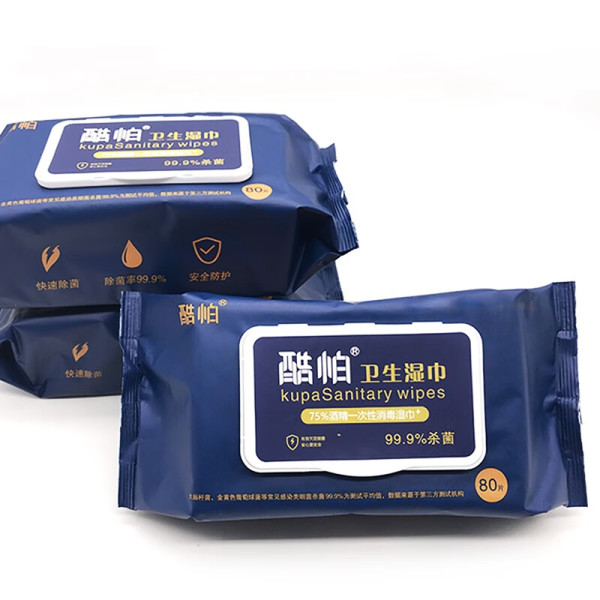 酷帕 75%酒精湿巾 居家办公消毒湿巾 酒精消毒湿巾80抽X1包