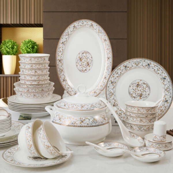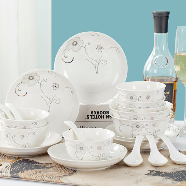 乐享 享 碗碟陶瓷套装家用实用欧式餐具套装碗盘子碗筷碗具景德镇20头 20头白金花语