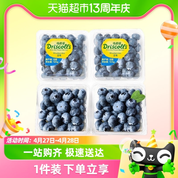 88VIP:BLEUETS 蓝莓牌 云南怡颗莓蓝莓鲜果2盒装起单盒125g新鲜水果包邮整箱
