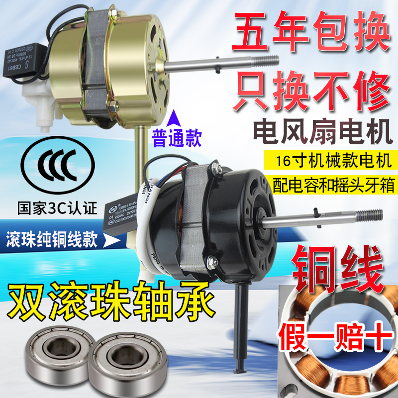 通用电风扇电机台扇落地扇马达电风扇配件摇头电机头双轴承纯铜线