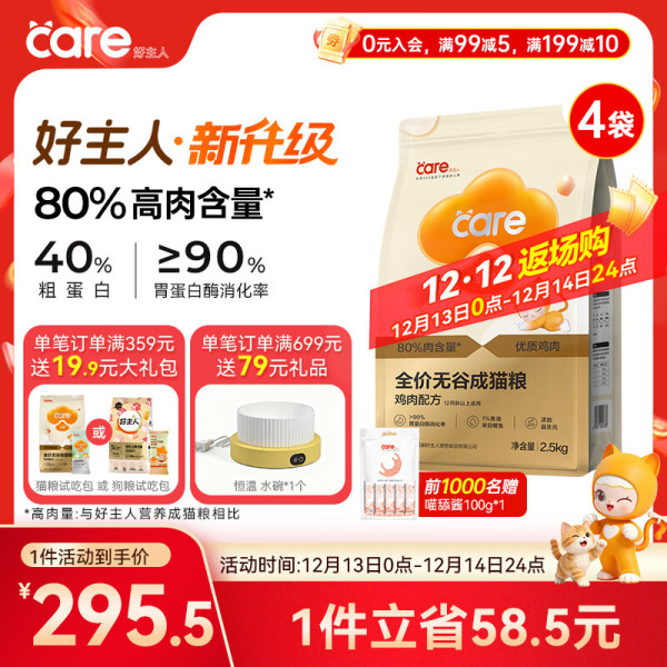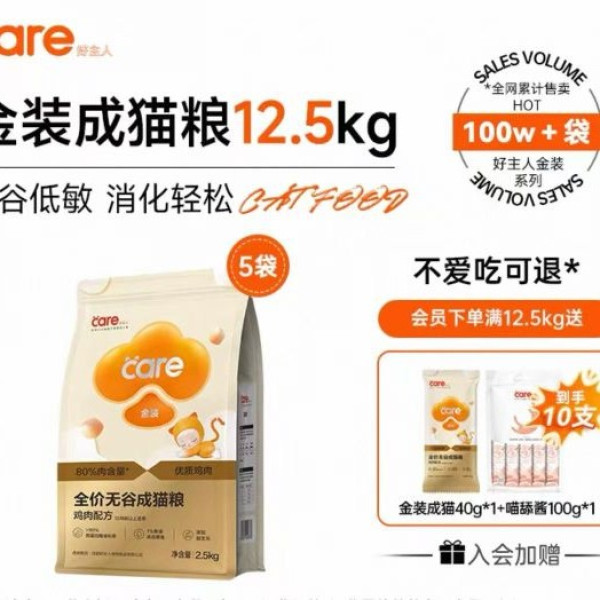 淘金币可用:CARE 鸡肉味成猫猫粮 12.5kg(5袋)