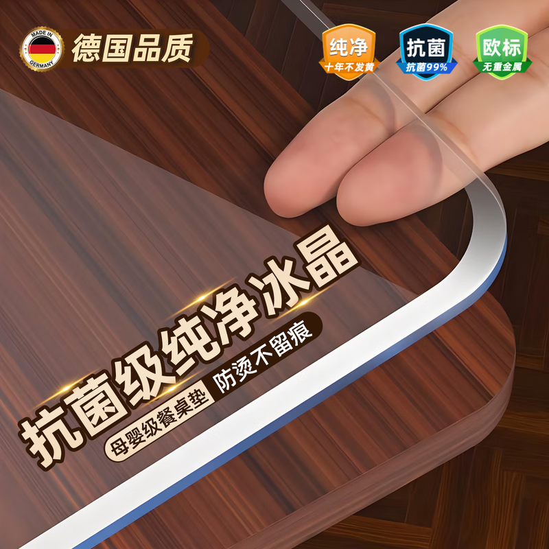 适之宝环保无味透明餐桌垫PVC桌布防水防油防烫茶几垫水晶板桌面保护垫 德国进口母婴抑菌足厚磨砂1.6mm 100*100cm