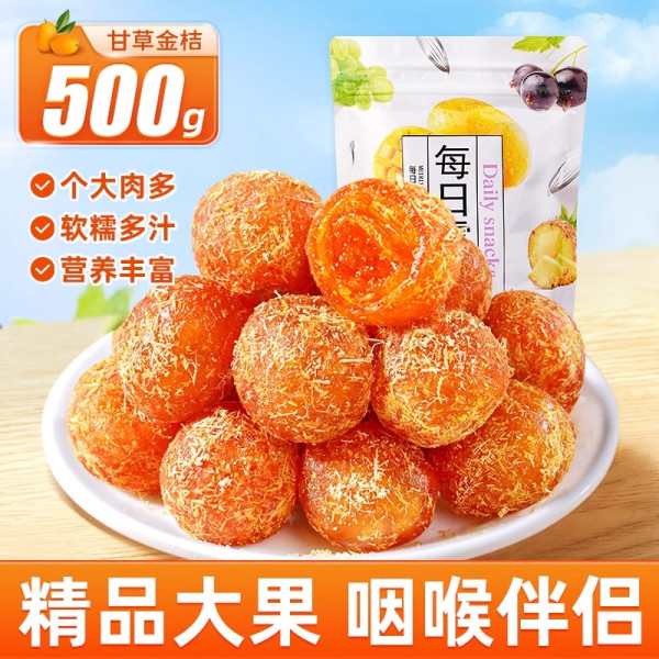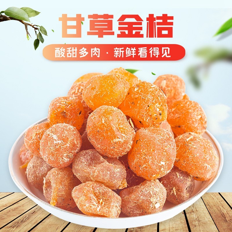 绿度山庄甘草金桔干整袋装蜜饯果干果脯酸甜橘冰糖金桔儿时休闲零食小吃 甘草金桔 500g*1袋