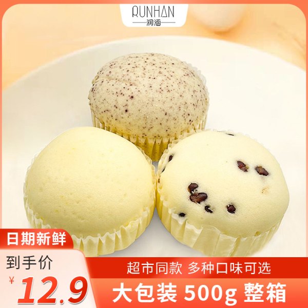 润涵优品蒸蛋糕面包早餐健康糕点办公室零食夜宵充饥小吃休闲食品 500g红豆味 500g