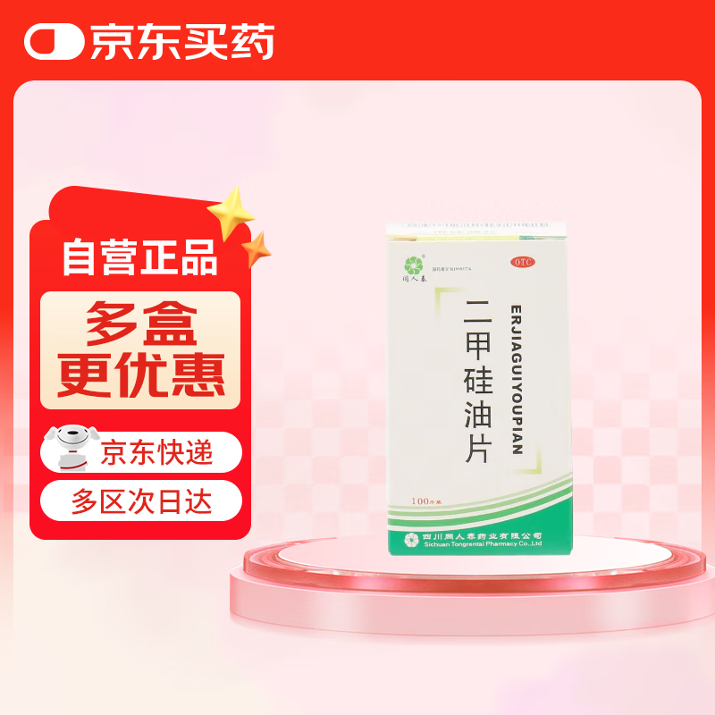 同人泰 二甲硅油片 25mg*100片/瓶 肠胃用药 胃药 用于胃肠道胀气 缓解胀气