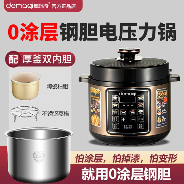 德玛奇 304不锈钢内胆电压力锅6L升一锅双胆家用高压锅煲汤自动