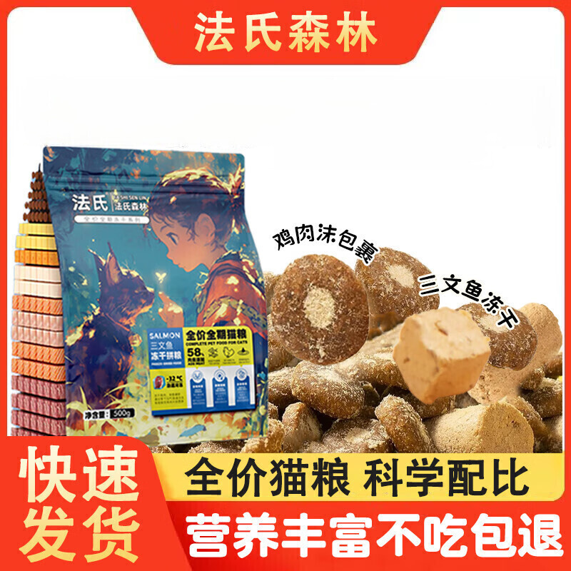 法氏森林 金渐层专用猫粮10斤实惠装成猫幼猫鲜肉冻干美毛防掉毛猫粮 金渐层冻干夹心三拼粮1斤 0lb