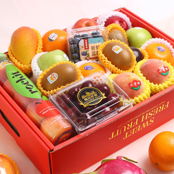 京真果 混搭新鲜水果礼盒新鲜应季水果混合组合春节企业送礼盒 单层+手提袋礼盒装10斤