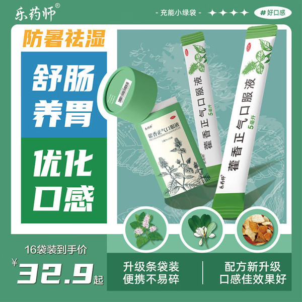 [乐药师] 藿香正气口服液 5ml*16袋/盒 正品旗舰防暑祛湿外感风寒胃肠感冒 5ml*16袋*1盒【新效期】