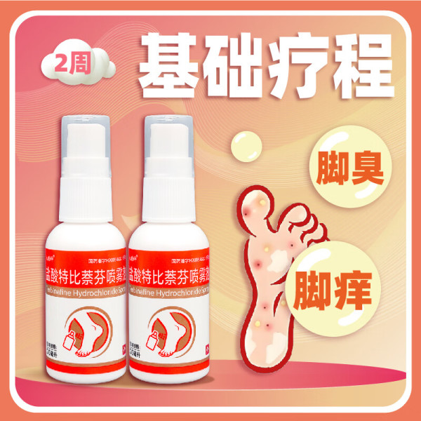 [乐药师] 盐酸特比萘芬喷雾剂 治疗脚气脚臭脚痒脱皮杀菌 2盒+藿香x1包