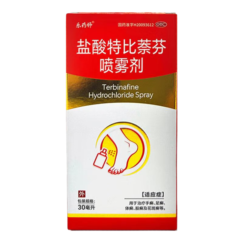 [乐药师] 盐酸特比萘芬喷雾剂 30ml/盒 治疗脚气脚臭脚痒脱皮杀菌 5盒