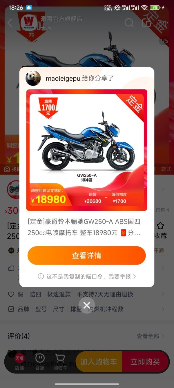 豪爵铃木 [定金]豪爵铃木骊驰GW250-A ABS国四250cc电喷摩托车 整车20680元