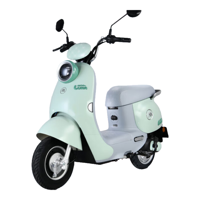 爱玛(AIMA)铅酸超长续航电动轻便摩托车女士时尚成人代步外卖电动摩托车露娜 浅柠绿【智能互联 1000W电机】