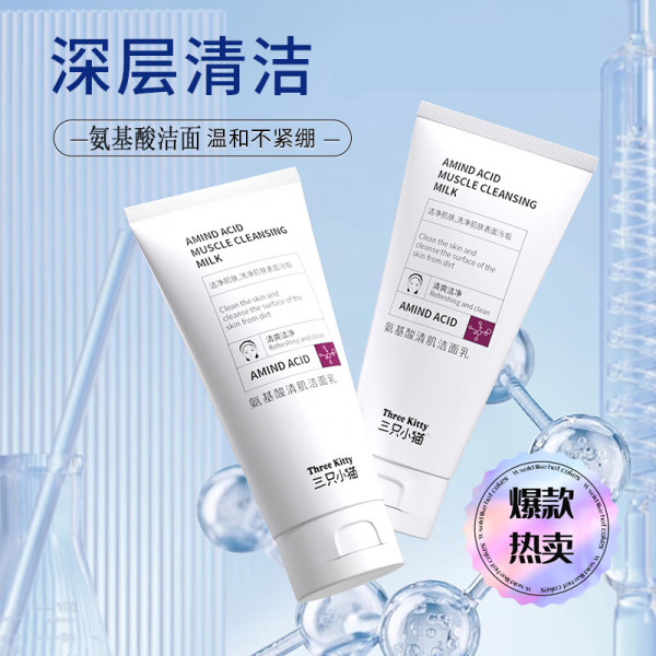三只小猫 THREE KITTY氨基酸洗面奶深层清洁净透紧致控油保湿嫩肤不刺激爽肤男女洁面乳 氨基酸洗面奶150g*1瓶