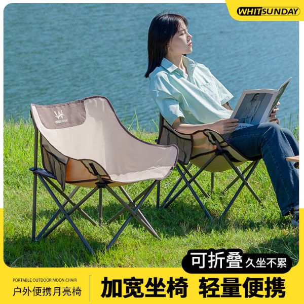 疆域时光 疆屿户外折叠椅子露营月亮椅便携钓鱼凳子靠背野餐折叠马扎收缩椅