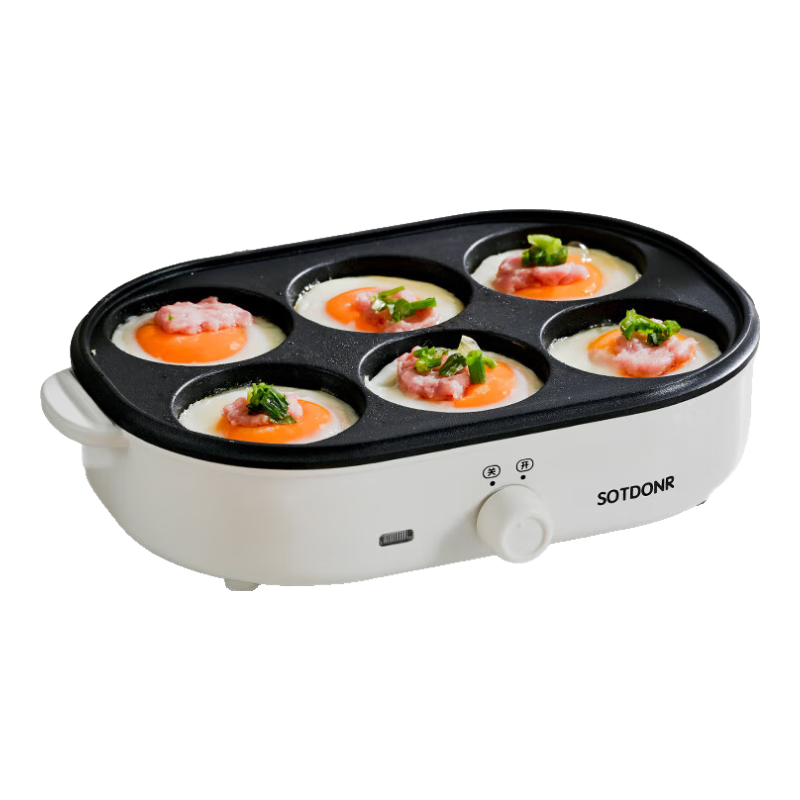 SOTDONR 煎蛋锅家用六孔煎蛋早餐机不粘锅鸡蛋汉堡锅插电煎荷包蛋锅多功能煎蛋电锅 六孔煎蛋锅(无盖款)