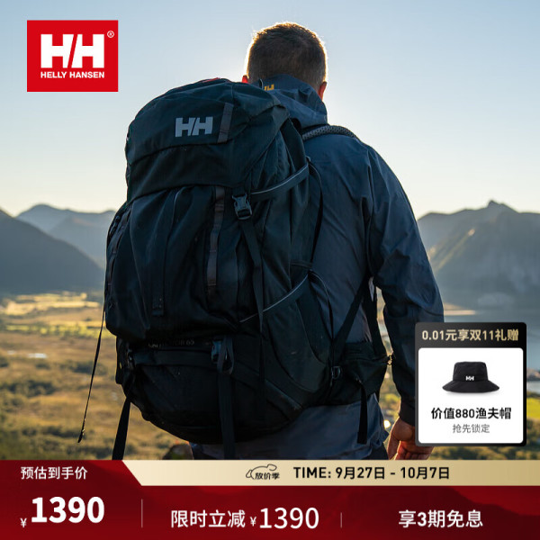 HELLY HANSEN, H/H海丽汉森hh24春新男女同款专业户外双肩背包65L 黑色 FREE