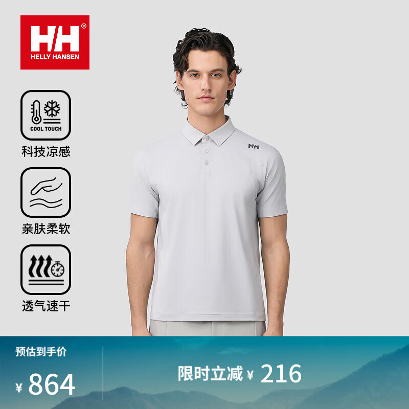 HELLY HANSEN, HH海丽汉森hh25夏男款清爽凉感吸湿速干防晒短袖POLO衫 M 灰色