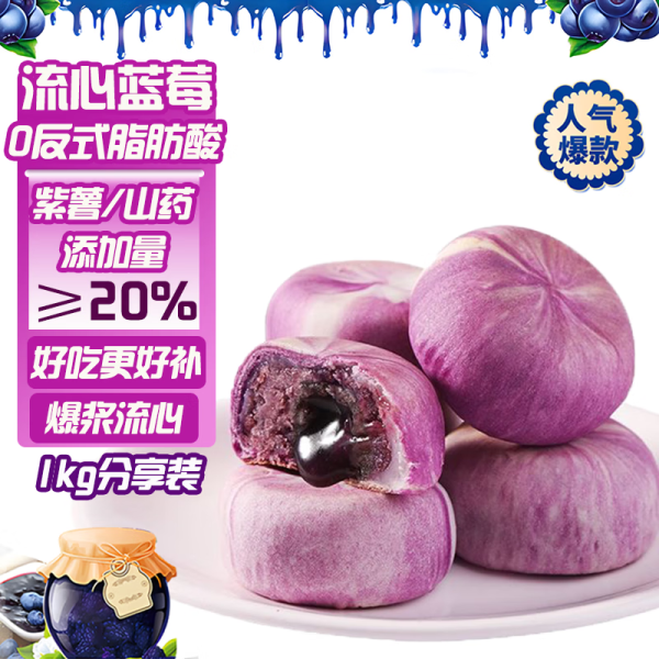 万般宜山药蓝莓无蔗糖爆浆流心饼酥雪媚娘面包糕点饼干休闲零食