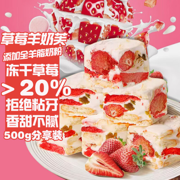 万般宜草莓羊奶芙雪花酥手工500g坚果点心独立包装零食牛轧糖沙琪玛
