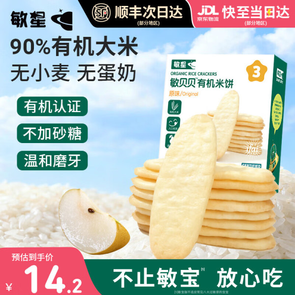 敏星 有机大米饼无小麦无蛋奶无麸质饼干儿童零食送婴幼儿童敏宝宝食谱 原味有机米饼1盒
