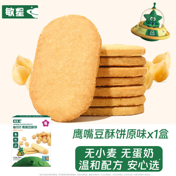 敏星 鹰嘴豆酥饼干无小麦麸质无蛋奶添加休闲零食送婴儿童宝宝食谱 鹰嘴豆酥饼80g*1盒