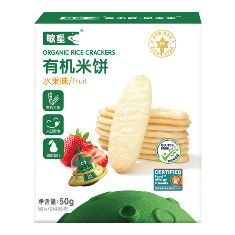 敏星有机大米饼无小麦麸质无蛋奶饼干儿童零食送婴幼儿童宝宝食谱 【清甜可口】水果味有机米饼1盒