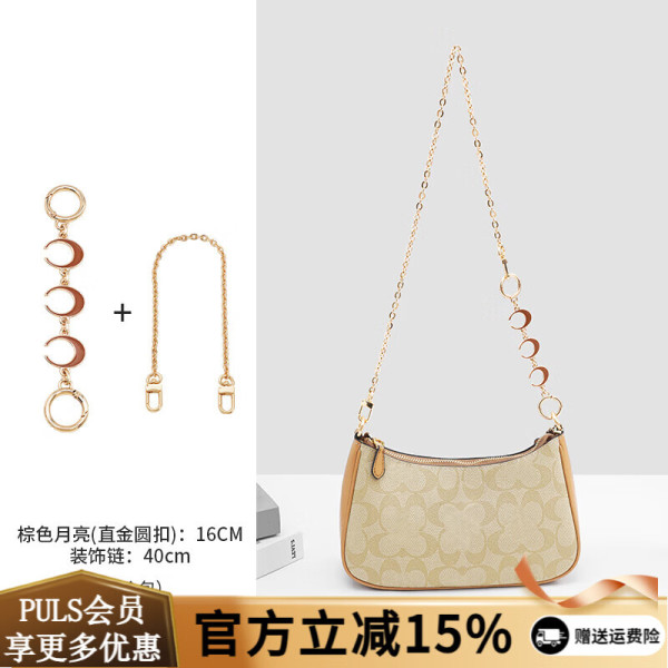 古蚁 Guyi 古蚁 适用于 Coach 蔻驰 Teri 麻将包肩带延长链改造腋下包带配件 棕色月亮16cm+装饰链40cm