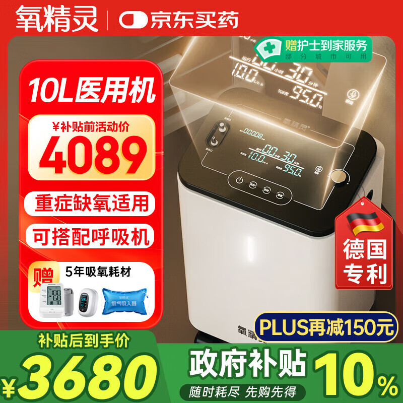 氧精灵10L升医用制氧机 大流量呼吸吸氧机家用老人慢阻肺氧气机十大品牌