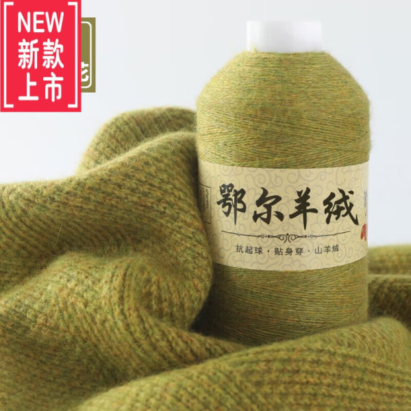 高档品质羊绒线山羊绒高支精纺纯山羊绒线机织手中细毛线特级绒【一两规格】 香槟色 814黄绿加花